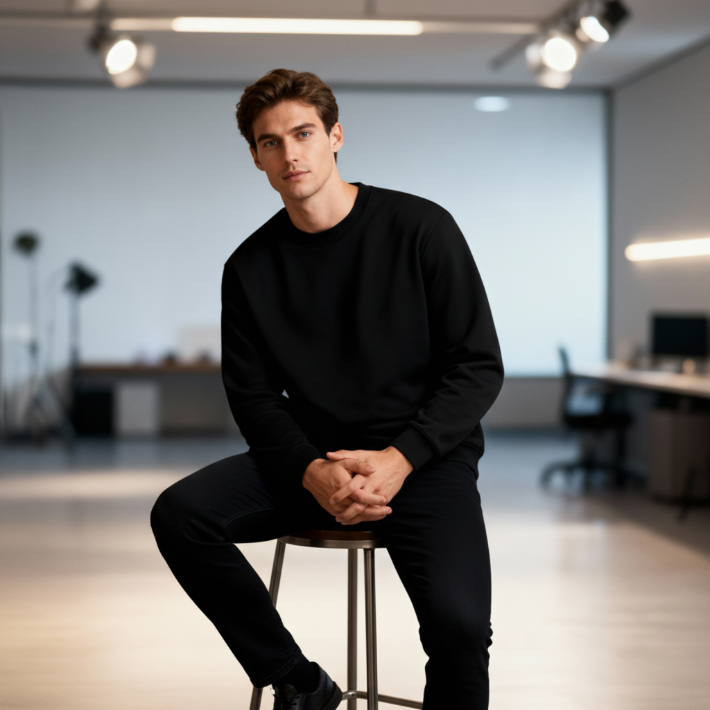 This apparel is crafted from a comfortable, high-quality 300 GSM fleece composed of 100% cotton, ensuring the fabric is thick, soft, and breathable for all-day wear. It features a relaxed unisex regular fit, designed for a comfortable silhouette, and is finished with snug ribbed cuffs and a ribbed hem for a secure and classic feel.