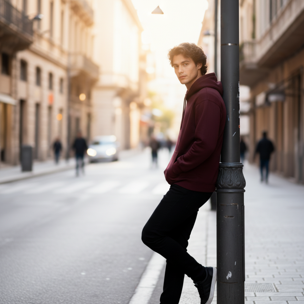 This item is made from 100% cotton, featuring a 300 GSM brushed fleece fabric that is heavyweight and cozy, perfect for chilly days. It has a Unisex regular fit, which offers a comfortable relaxed feel while being snug around the cuffs and hem.