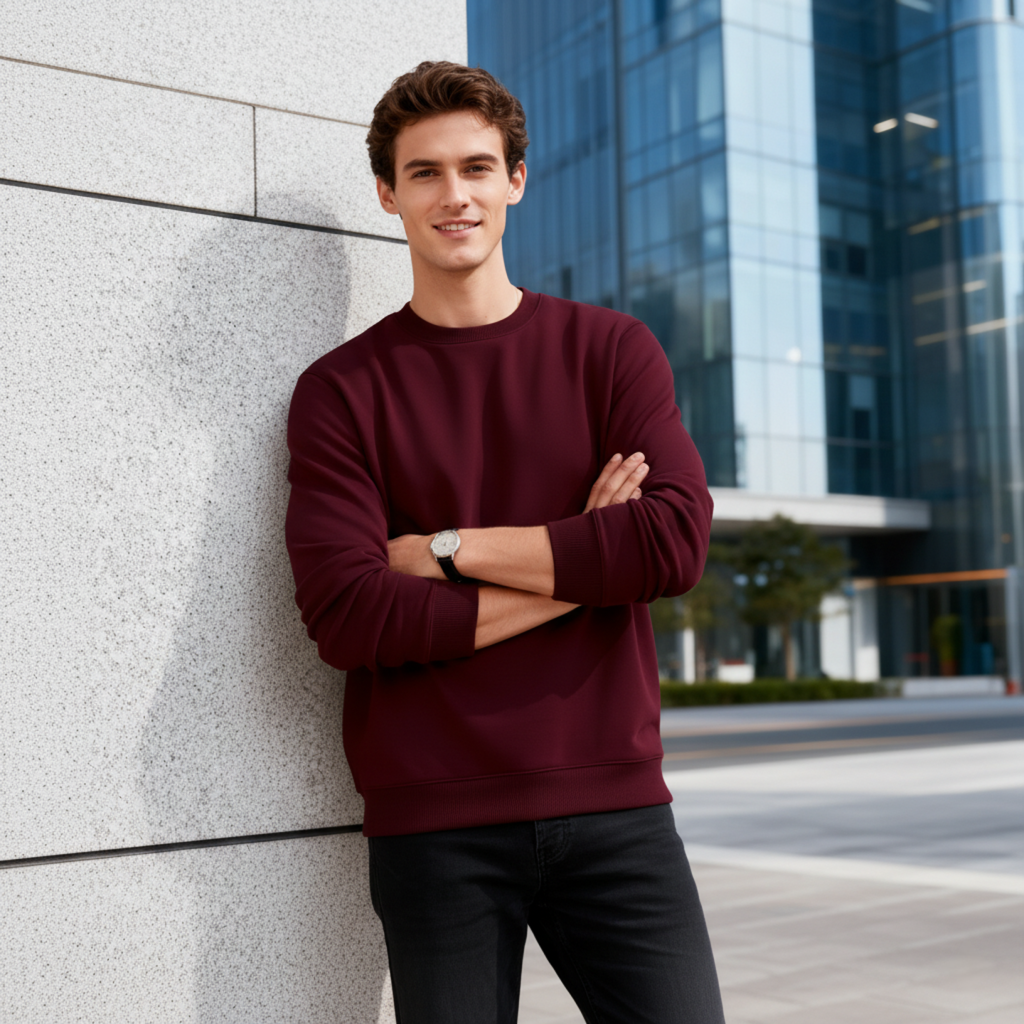 This apparel is crafted from a comfortable, high-quality 300 GSM fleece composed of 100% cotton, ensuring the fabric is thick, soft, and breathable for all-day wear. It features a relaxed unisex regular fit, designed for a comfortable silhouette, and is finished with snug ribbed cuffs and a ribbed hem for a secure and classic feel.